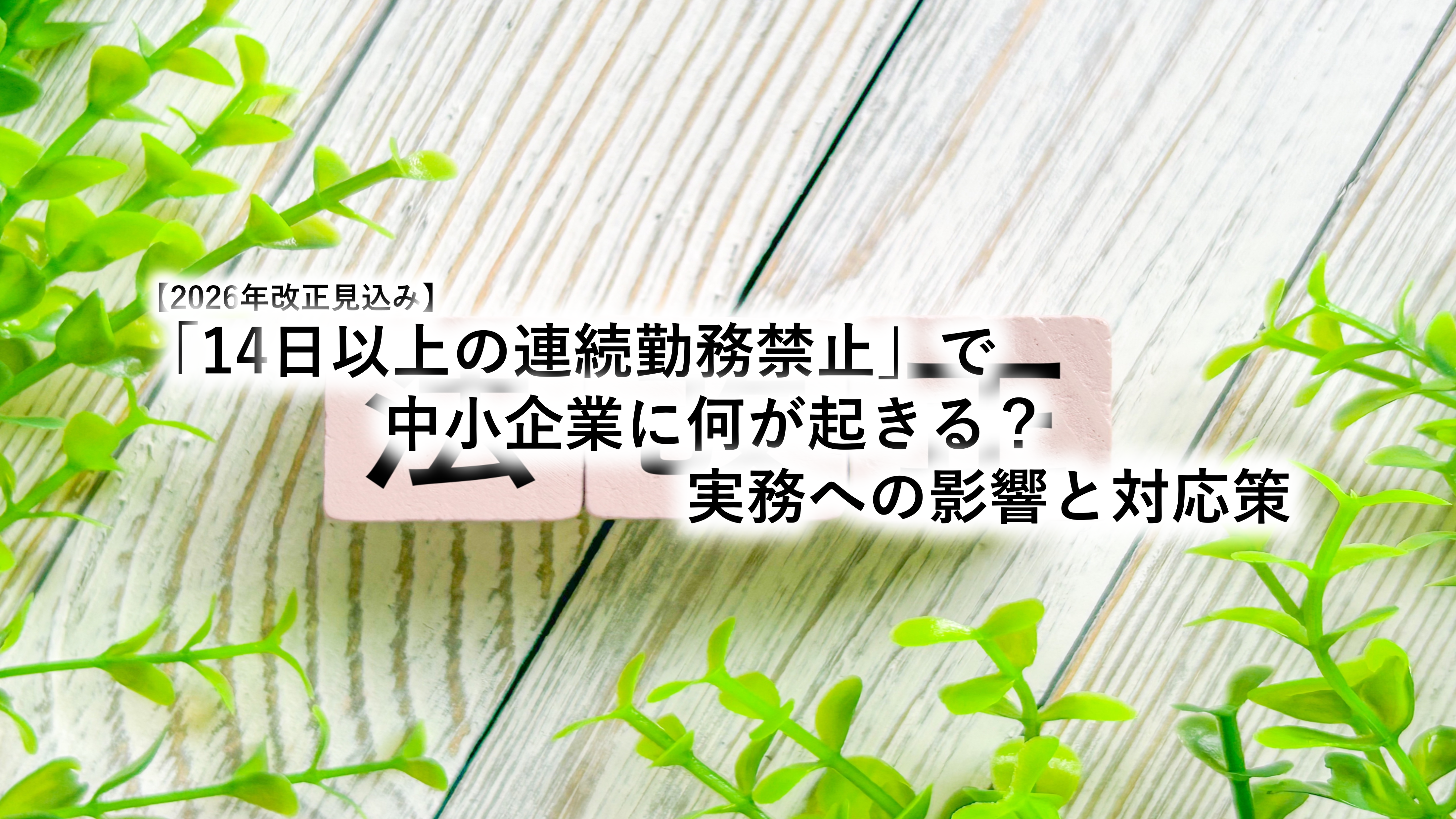 ブログ 【2026年改正見込み】「14日以上の連続勤務禁止」で中小企業に何が起きる?実務への影響と対応策 変形労働時間制では最大22日連続勤務が可能でしたが、2026年に「14日以上の連続勤務禁止」改正が検討中。社労士は勤務実態診断から就業規則改定、シフト設計支援まで一括対応可能です。 2025.11.05 ブログ